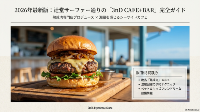 3nD CAFE+BAR辻堂のメニューや2026年の混雑状況について詳しく解説します。熟成肉バーガーや限定スイーツの最新情報に加え、土日の予約方法まで網羅しました。3nD CAFE+BAR辻堂のメニューと2026年の混雑状況が気になる方は必見!子連れやペット同伴での利便性までこの記事で全て分かります。